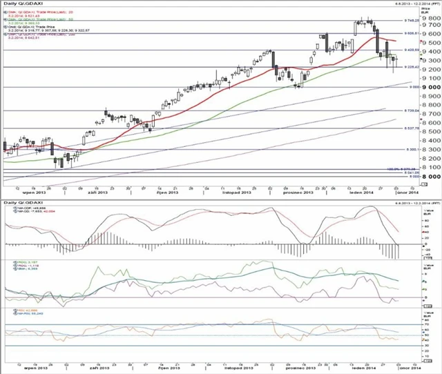 10 000 psychologická úroveň, 9 521 20denní (exponenciální) klouzavý průměr, 9 421 lokální vrchol, 9 369 50denní (exponenciální) klouzavý průměr, 9 000 psychologická úroveň, 8 643 200denní (exponenciální) klouzavý průměr.