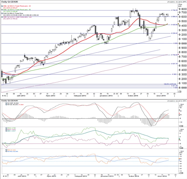 Technické indikátory jsou celkově pozitivní. Pro další vývoj bude klíčové případné testování historického maxima okolo 9 750 bodů. Jeho překonání by indexu uvolnilo cestu k psychologické úrovni 10 tisíc bodů. Pokud by naopak bylo neúspěšné, vytvořil by se dvojitý vrchol, což by bylo pro následující týdny nepříznivé.