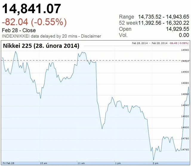 Asijské akcie se v závěru týdne obchodovaly smíšeně (28. 2. 2014)