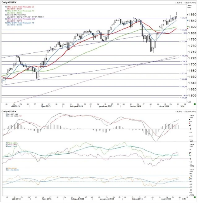 Technické indikátory jsou celkově mírně pozitivní. Pro tento týden je důležitá rezistence v podobě předchozího historického maxima okolo 1 850 bodů. Při poklesu pod ni hrozí vybírání zisků. Jinak se čeká konsolidace lehce nad touto úrovní.