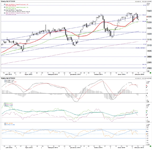 Technická analýza indexů S&P 500, DAX a Stoxx 600.