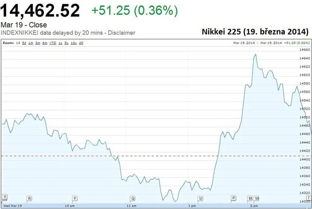 Asijské akcie se ve středu pohybovaly kolem nuly a uzavřely smíšeně. Investory na jednu stranu mírně uklidnilo vystoupení ruského prezidenta Putina, vyčkávají však na další vývoj situace na Krymu a mimo jiné také nezapomínají na zasedání Fedu, který ve středu zveřejní své rozhodnutí o nastavení své politiky.