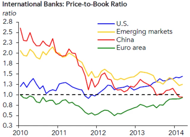 Optimisté naopak říkají, že byly čínské banky ohodnoceny "na velkou krizi", když se obchodovaly (a stále obchodují) s cenou pod účetní hodnotou vlastního kapitálu.