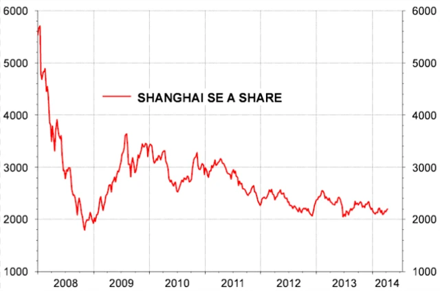 Zadlužení v kombinaci s nejasnou situací čínských bank a utahováním měnové politiky nebudí obavy jen o banky, ale o celou ekonomiku a růst ekonomiky, který je poháněný dluhem. Šanghajský akciový index se tak obchoduje poblíž minim z roku 2008.