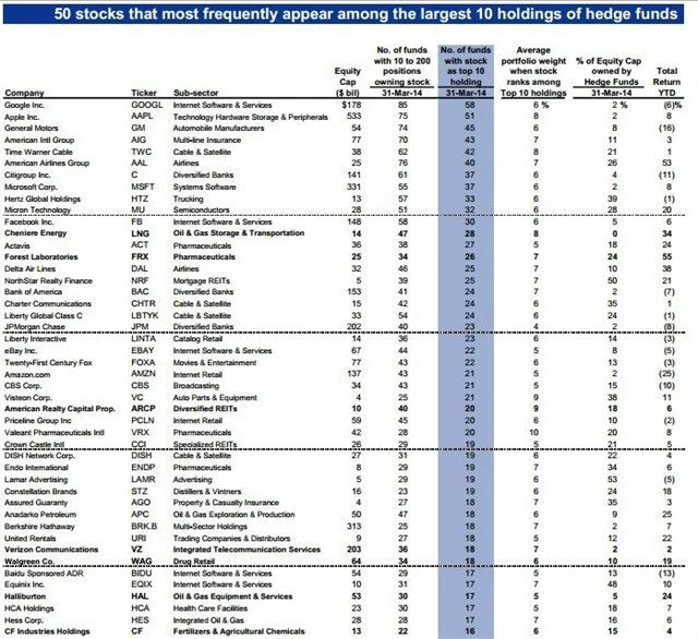 Nejoblíbenější akcie v portfoliích hedgeových fondů (23. 5. 2014)