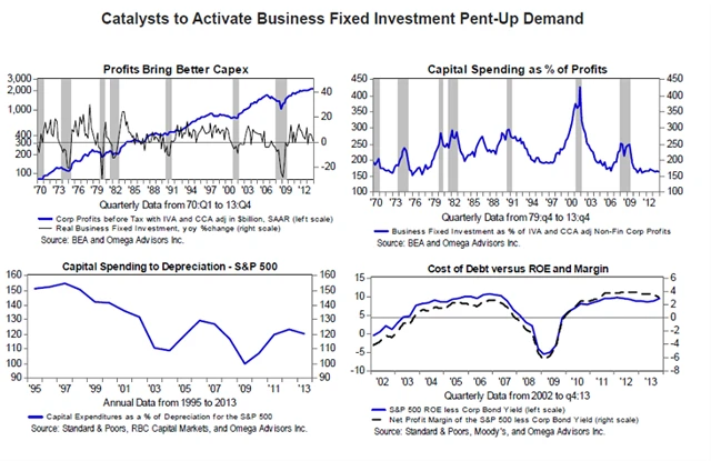 Firmy v USA drží nejvíce hotovosti za poslední dekády, takže je jen otázkou času, kdy by mohly začít opět utrácet, aby se růst fixních investic vrátil k dlouhodobému trendu.