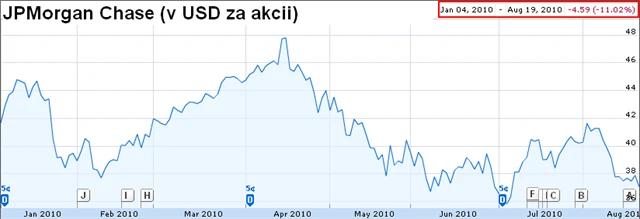 JPMorgan Chase je finanční společnost a Chase Bank USA jí vydává kreditní karty. Investoři by si jistě představovali lepší zhodnocení od začátku roku, akcie JPMorgan Chase totiž poměrně výrazně prohrávají s průměrem trhu.