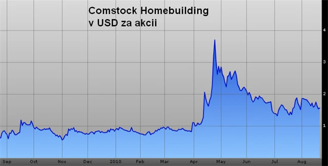 Comstock Homebuilding staví domy na bydlení i stavby pro jiné využití. Od začátku srpna 2009 vzrostly akcie této firmy o zhruba 650 procent (i malý pohyb ceny znamená velké procentní pohyby). Například během jednoho dubnového týdne dokázaly akcie přidat 117 procent.