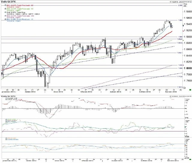 2 000 psychologická hranice, 1 918 20denní klouzavý průměr, 1 900 psychologická úroveň, 1 889 50denní klouzavý průměr, 1 810 200denní klouzavý průměr.