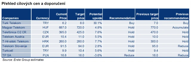U Telefónica O2 ČR, Telekom Austria, T-Hrvatski Telekom a Turkcell necháváme doporučení "držet", protože v blízké budoucnosti nelze očekávat žádné pozitivní impulsy.