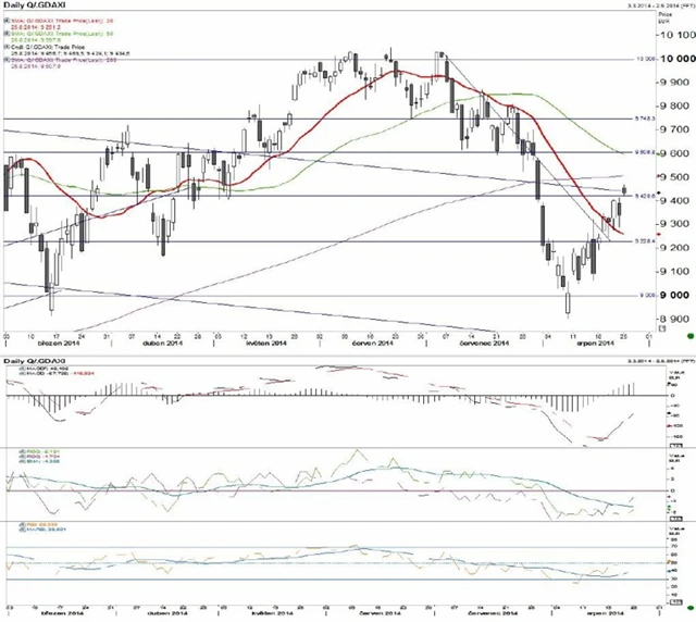 10 000 psychologická úroveň, 9 598 50denní klouzavý průměr, 9 507 200denní klouzavý průměr, 9 261 20denní klouzavý průměr, 9 000 psychologická úroveň.