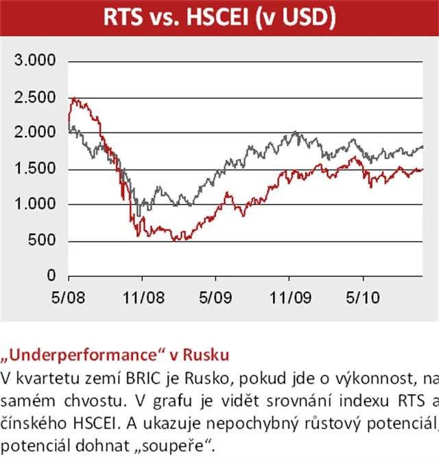 Nicméně hlavní tržní barometr (index RTS), který zohledňuje široký trh, svou výkonností za svými "partnery" ze zemí BRIC zaostává. Od poloviny roku 2008 zaznamenává stále ještě mínus ve výši 40 procent. Vychází se však z toho, že Rusko svou nižší výkonnost v kvartetu zemí BRIC dříve nebo později odstraní. Rusko je nejen velmi hrdé, ale je také schopné učit se.