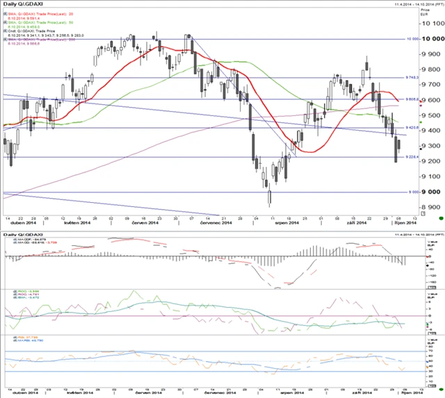 Technické indikátory jsou celkově negativní. Stabilizaci by mohl přinést téměř přeprodaný RSI. Očekáváme, že index může mít v následujících dnech tendenci zmírnit nedávné ztráty. Negativní momentum ale pravděpodobně přetrvá. Nejbližší důležitou úrovní podpory je hranice 9 000 bodů.