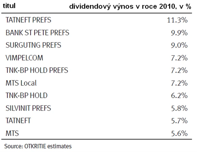 TB: Sektory jako telekomunikace a ropa, které mají za sebou období největšího růstu, začínají vyplácet zajímavé dividendy – 5 i více procent. Nejzajímavější dividendové tituly jsou Tatněft, Surgutněftegaz a MTS.