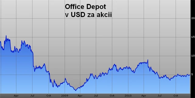 Office Depot by se však mohl objevit v hledáčku konkurenčních firem jako možný cíl převzetí. P/S 0,11, P/B 1,14, ROE 3 %.