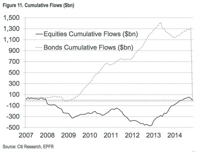 Jedno z vysvětlení je, že investoři převáděli peníze z dluhopisového trhu do hotovosti a akcií, obzvláště když výnosy vládních dluhopisů klesaly a úrokové sazby zůstaly nízko. Podle zprávy Citibank "Investiční témata pro rok 2015" však tradiční přelévání mezi akciemi a dluhopisy jakožto strategie přestává být důležité.