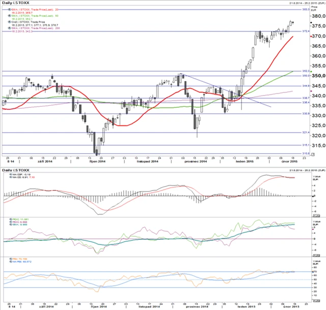 Technická analýza indexů S&P 500, DAX a Stoxx 600.