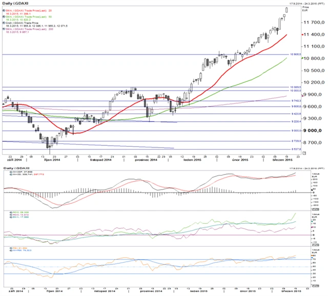 Měsíc trvající překoupení na RSI očividně v cestě růstu indexu nestojí. Alespoň prozatím. V následujících dnech očekáváme obchodování v blízkosti psychologické úrovně 12 000 bodů.