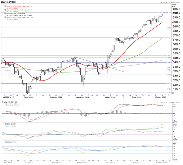 Technická analýza indexů S&P 500, DAX a Stoxx Europe 600.