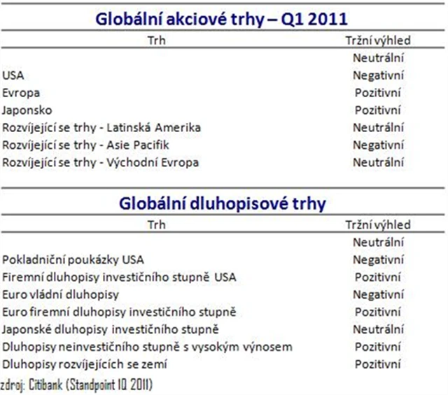 O tom, co nás letos čeká, jsme hovořili nejen s Pavlem Drahotským, ale i s dalšími experty ze Citibank v čele s Jaromírem Šindelem a Davidem Köglerem. Jejich roční výhled vypadá zhruba následovně: "Globální ekonomický růst bude v rozvinutých zemích stále trochu zabrzděný, v rozvíjejících se zemích naopak nepříjemně našlápnutý. Makroekonomický trend bude určen uvolněnou měnovou politikou, krizí státních dluhů a vzestupem Asie."