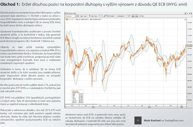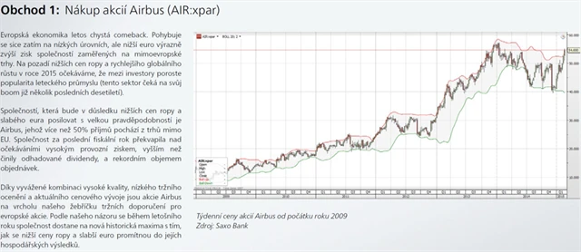 Nižší cena ropy již zvedla spotřebitelskou důvěru v Evropě, německá ekonomika vystoupala na nejvyšší úroveň od roku 2005. Napříč celým kontinentem se zvedají také maloobchodní tržby. Slabší euro nahrává evropskému exportu, který se stává konkurenceschopnějším. Společnosti vysoce orientované na mimoevropské trhy budou těžit z vyšších příjmů vyjádřených v eurech. Kvantitativní uvolňování ECB navíc povede k tomu, že se výnosnost pevně úročených investic bude blížit nule či pod ni, což bude motivovat investory k nákupům akcií.