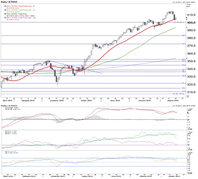 Technická analýza indexů S&P 500, DAX a Stoxx Europe 600.