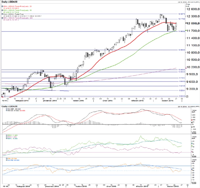 Technická analýza indexů S&P 500, DAX a Stoxx Europe 600.