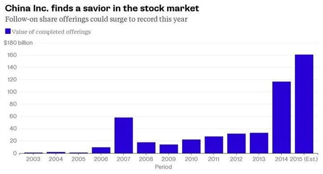 Společnosti se proto uchylují k záložnímu plánu. Chybějící tržby a zisk nahrazují penězi získanými z prodeje nových akcií. Jen letos zatím čínské podniky obchodované na šanghajské burze v sekundárních nabídkách akcií prodaly cenné papíry za 82 miliard dolarů. A analytici z UBS očekávají, že toto číslo do konce roku stoupne na 161 miliard dolarů. V rámci IPO (primárních úpisů akcií) přitom letos čínské firmy vstupující na šanghajskou burzu prodaly akcie jen za 10 miliard dolarů.