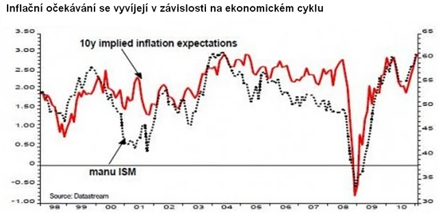 Graf ukazuje, že se inflační očekávání pohybují spolu s cyklem: