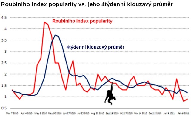V únoru však Roubinoho popularita na Googlu dosáhla minima od pádu banky Lehman Brothers. Od loňského září klesla o 50 %, od května dokonce o tři čtvrtiny.