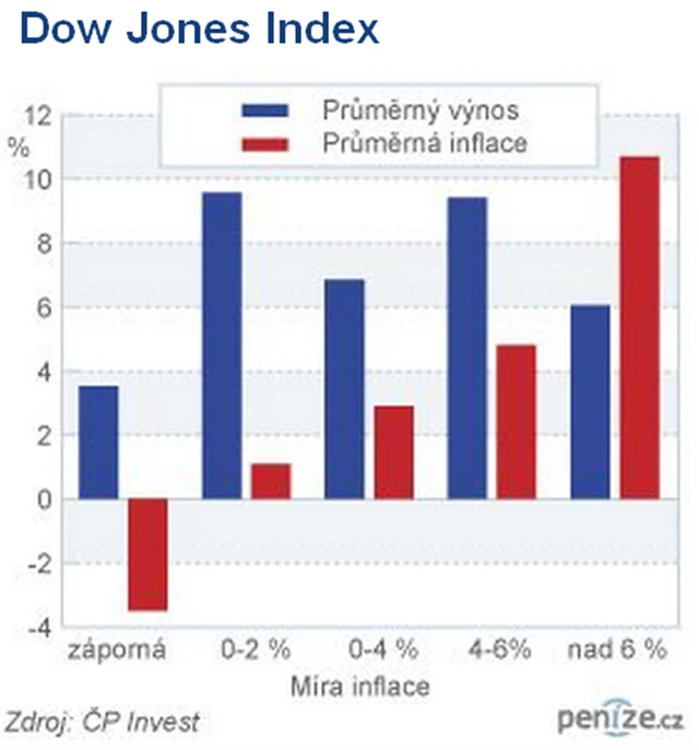 Pro tuto odpověď jsem sledoval chování jednoho z nejstarších akciových indexů, kterým je americký Dow Jones. A k čemu jsem dospěl? Potvrdilo se, že akcie rostou a výše růstu závisí na míře inflace, avšak neplatí zde lineární závislost!