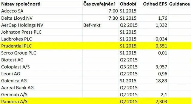 Poznámka: Odhady analytiků jsou aktuální k 5. 8. 2015.