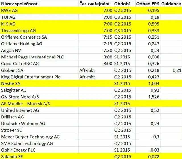 Očekávané výsledky světových firem v týdnu od 10. srpna (7. 8. 2015)
