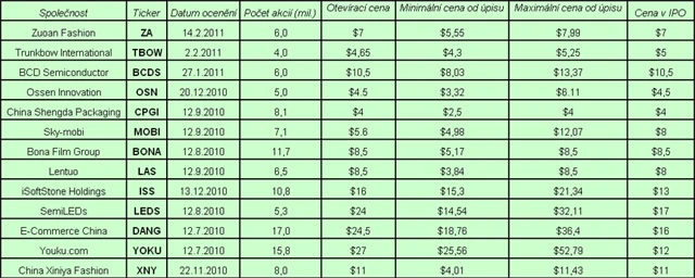 Opačným příkladem může být excelentní debut čínských akcií Qihoo 360 Technology (QIHU). Internetová společnost vydala 12,1 milionu nových akcií za 14,5 USD. Akcie otevíraly na 27 USD a zavíraly na 34 USD.