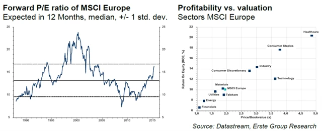 Potenciál pro další zisky celého indexu jsou malé i kvůli pomalému růstu ziskovosti. Ukazatele naznačují, že ocenění celého trhu není příliš atraktivní. Naše hodnocení, tedy že zdravotnický, technologický a spotřebitelský sektor budou překonávat celkový trh, je podpořeno lepším výhledem zisků. Těžaři komodit, firmy ze síťových odvětví a energetické společnosti by na druhou stranu měly ve 3Q2015 zaostávat.