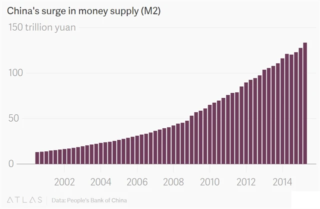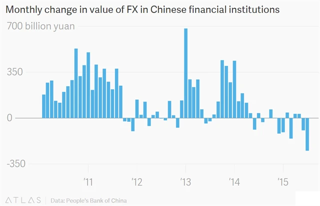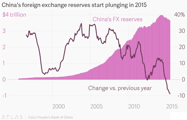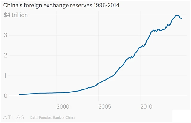Čína již dlouhou dobu drží svoji měnu zavěšenou na americký dolar při uměle levném kurzu. Levnější jüan navzdory přílivu příjmů z exportu a přímých zahraničních investic umožnil Číně nahromadit velké zásoby devizových rezerv.