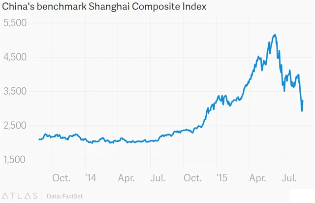 Začátkem července 2015 vláda spustila rozsáhlé tržní intervence, které poslaly index Shanghai Composite až k hranici 4 500 bodů. Problémem ale bylo to, že pokaždé, kdy se akcie přiblížily k této hodnotě, začali investoři prodávat v obavách, že vláda v podpůrných opatřeních poleví. V důsledku toho se účet čínské vlády za podporu akciového trhu mohl podle propočtů Christophera Baldinga z Pekingské univerzity vyšplhat až na 1 bilion USD.
