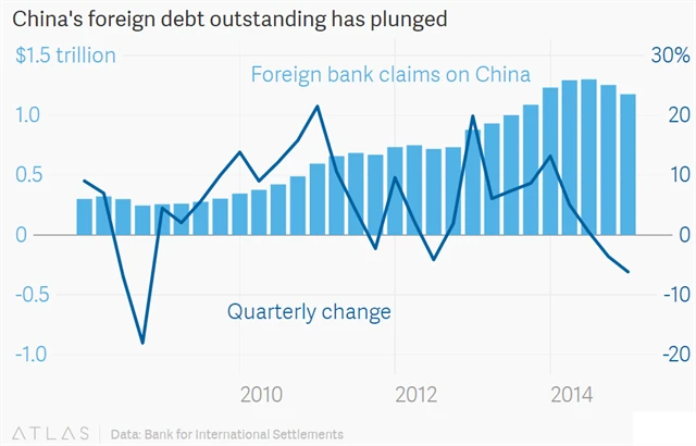 Jedním z ukazatelů tohoto trendu je pokles (převážně) krátkodobého ("tradingového") kapitálu od zahraničních bank, který odstartoval ve čtvrtém čtvrtletí 2014.