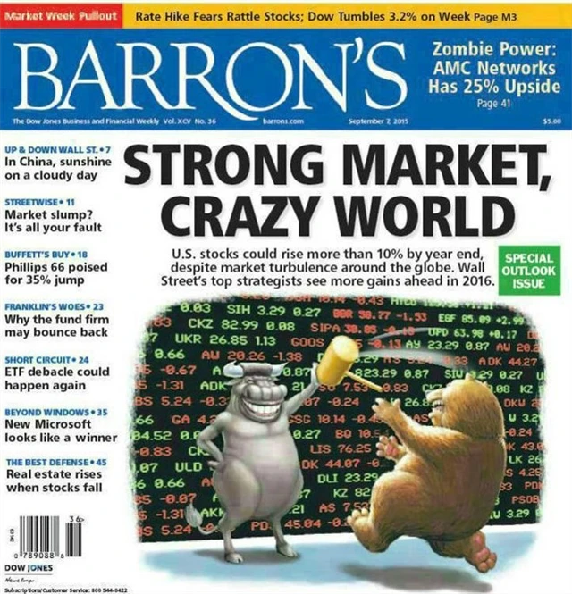 Čína je možná výmluvou, ospravedlněním poklesů na světových trzích. Fed a jeho vůle normalizovat sazby může posloužit stejně dobře. Dlouhodobí investoři v každém případě mají klid, mohou poslat pravidelnou platbu na účet a třeba si něco přečíst. Klidně Barron's.