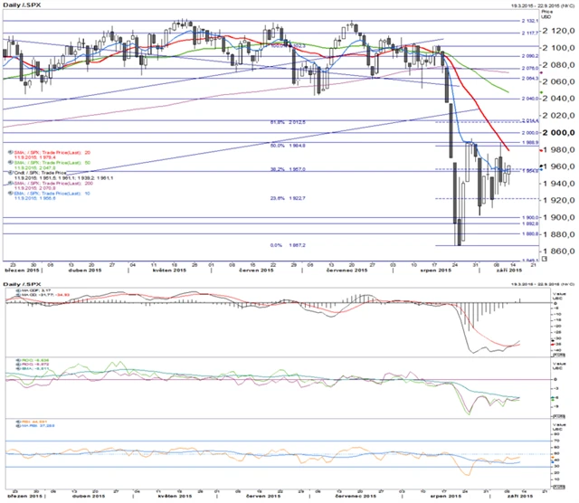 1 979 20denní klouzavý průměr, 2 048 50denní klouzavý průměr, 2 071 200denní klouzavý průměr, 1 867 lokální dno.