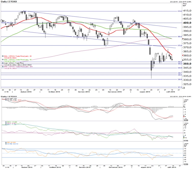 Technická analýza indexů S&P 500, DAX a STOXX Europe 600.