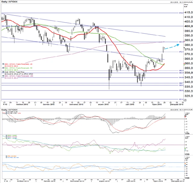 Technická analýza indexů S&P 500, DAX a STOXX Europe 600.