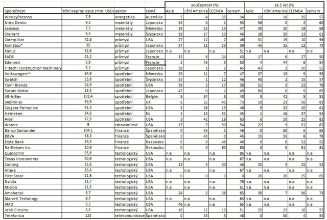 Citigroup proto nabízí zajímavou alternativu. Sestavila seznam 36 firem, které již nyní čerpají značnou část svých tržeb z mladých ekonomik. Podíl těchto tržeb by měl během pěti let dosáhnout alespoň 50 procent.