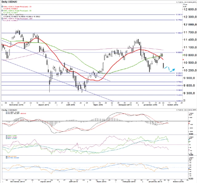 Celkově jsou technické indikátory spíše negativní. Pro další dny očekáváme testování lokálního minima z loňského prosince.