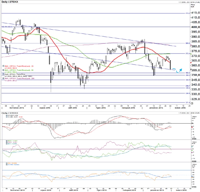 Technická analýza indexů S&P 500, DAX a STOXX Europe 600.
