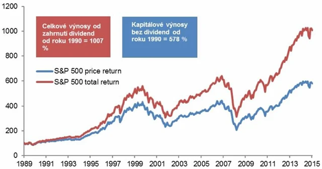 Dividendy jsou důležitým kořením dlouhodobého investování. O jejich významu pro celkové výnosy z držení akcií nejlépe vypovídá dlouhodobé srovnání.