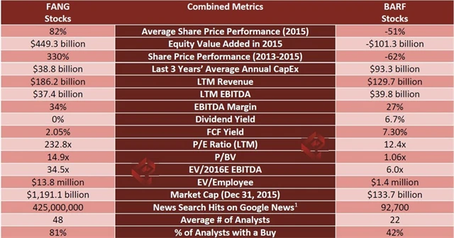 Loni vešla ve známost zkratka FANG (Facebook, Amazon, Netflix, Google). Akcie těchto čtyř firem za rok 2015 v průměru posílily o 82 % a jejich tržní kapitalizace narostla o zhruba 450 miliard USD. Za posledních 12 měsíců tržby těchto společností dosáhly 186 miliard USD. A letos například Facebook a Alphabet (dříve Google) na burze předvádějí další maxima.