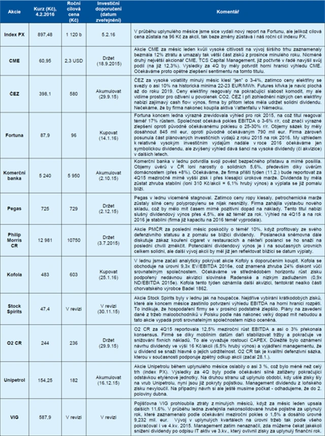 ČS: Únorová strategie pro české akcie (7. 2. 2016)