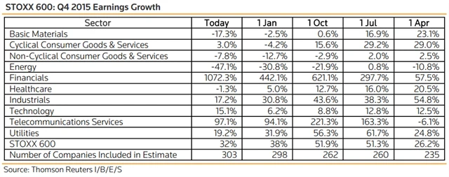 Jak se vyvíjely odhady růstu či poklesu zisků evropských firem?