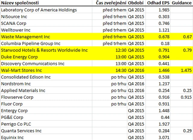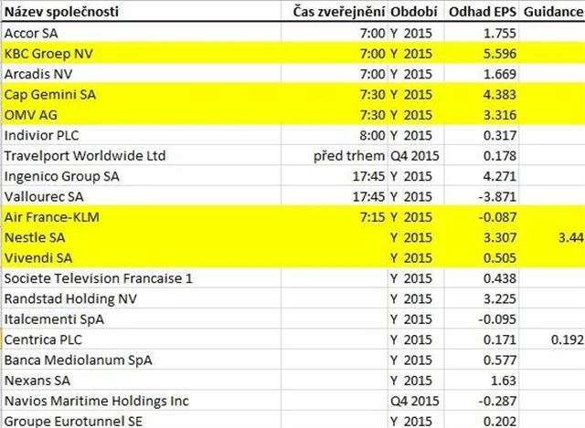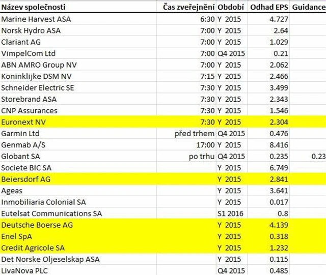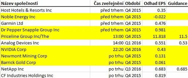 Očekávané výsledky světových firem v týdnu od 15. února (12. 2. 2016)